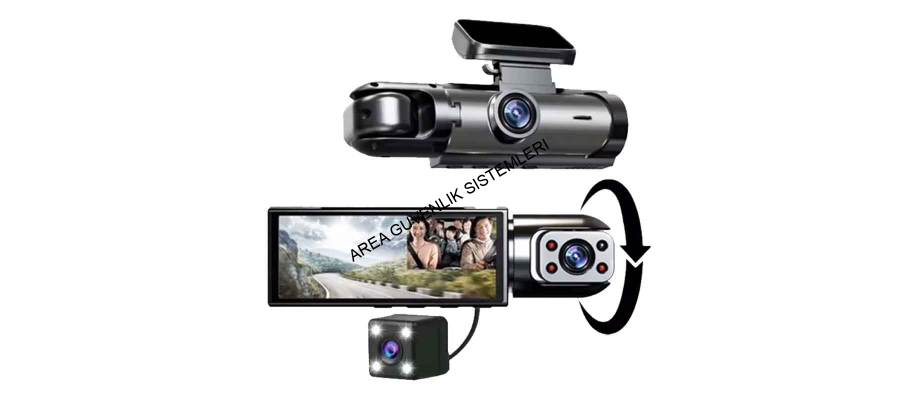 3 Kameralı Hd Araç Kamerası IPS Ekran, Geniş Görüş Açısı Ön Arka ve Araç Içi 3 Kamera Desteği, Tf Kart Desteği