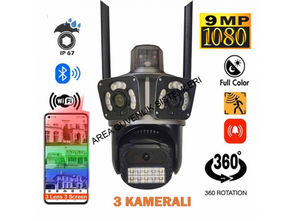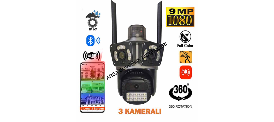 3 Kameralı Wifi Alarmlı Hareket Takipli Full Hd Alarmlı Güvenlik Kamerası